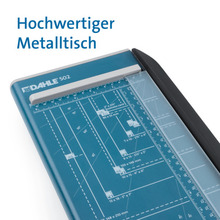 Taglierina Hobby a leva, con pressino manuale, lame in acciaio di Solingen, luce 320 mm - capacità 8 fogli - 2 squadre laterali - piano prestampato con formati fotografici e suddivisione in cm - piano 420x175 mm.