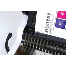 Per uso regolare in piccoli uffici: capacità di perforazione 20 fogli, capacità di rilegatura 300 fogli con dorsi di diametro max 38mm. Il pettine dorsi inclinato facilita l'inserimento dei fogli perforati. La guida laterale regolabile permette un allineamento accurato. Cassetto dorsi con misuratore brevettato dei dorsi e dei documenti per scegliere velocemente i consumabili giusti. Cassetto sfridi con apertura automatica per evitare inceppamenti. Il caricamento verticale dei fogli assicura un perfetto allineamento. Incluso starter kit per 10 documenti. Garanzia: 2 anni.