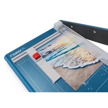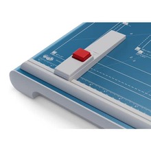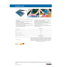 Taglierina a leva, lama superiore e lama inferiore di acciaio di alta qualitą . Pressino manuale proteggidita, squadra laterale, marginatore posteriore regolabile, piano marcato con formati DIN. Capacitą 1,5 mm- luce: 330 mm. - capacitą 15 fogli.